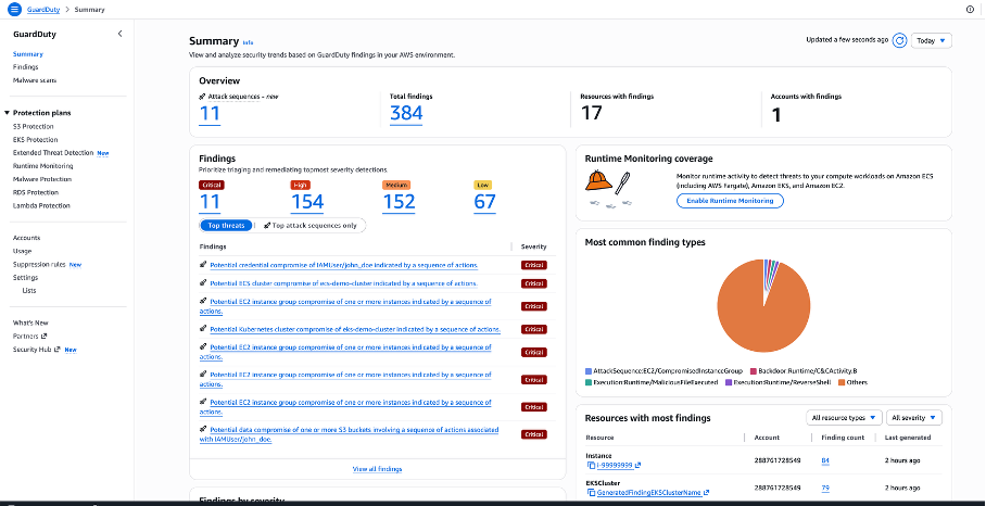 | EC2 Unauthorized Access | `UnauthorizedAccess:EC2/SSHBruteForce`                        | Medium–High      |