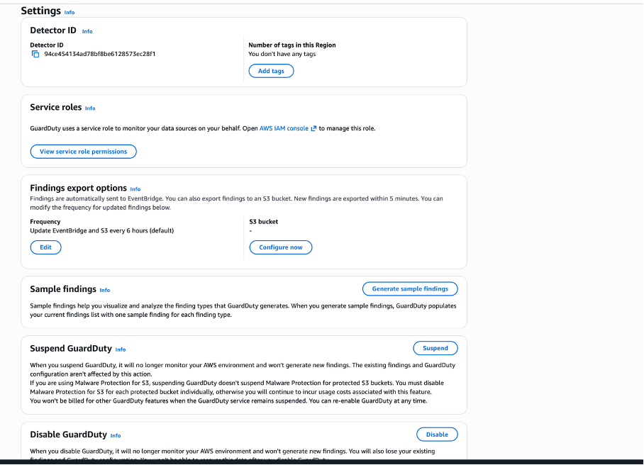 GuardDuty operates at the region level. If you have GuardDuty enabled in multiple AWS regions, you must repeat Steps 2–5 for each region, or use **GuardDuty multi-account / delegated administrator** setup to aggregate findings to a central account.