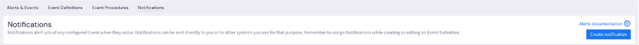 In the top navigation bar, click **Alerts**, then select the **Notifications** tab. This is where you manage every outbound integration Graylog can call.