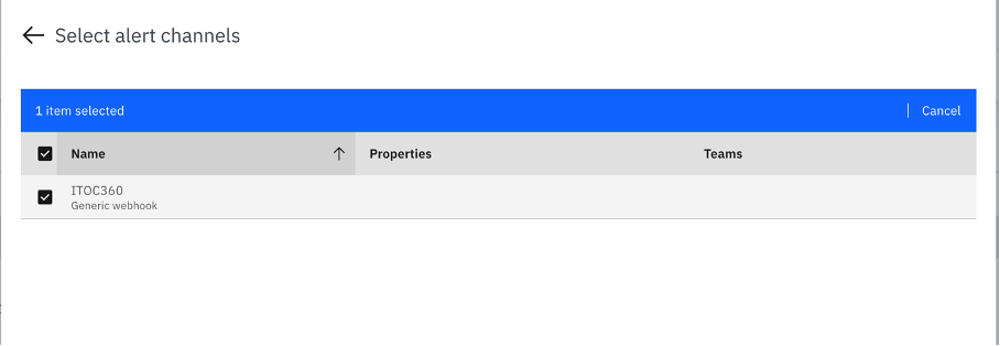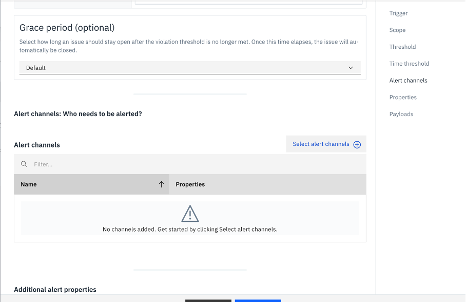 Scroll down to the **Alert channels** section and click **Select alert channels**. Find the channel you created earlier, check it, and confirm the selection.