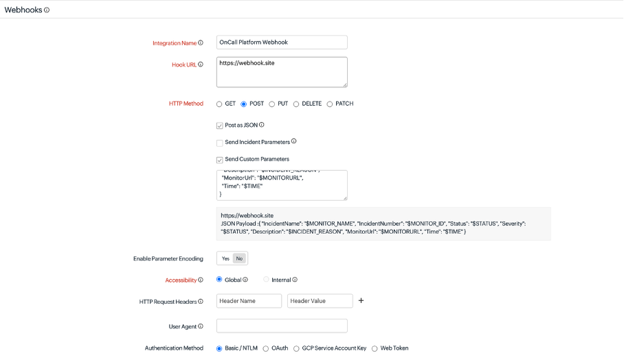 1. Integration Name: Type a recognizable name (e.g., `OnCall Platform Webhook`).